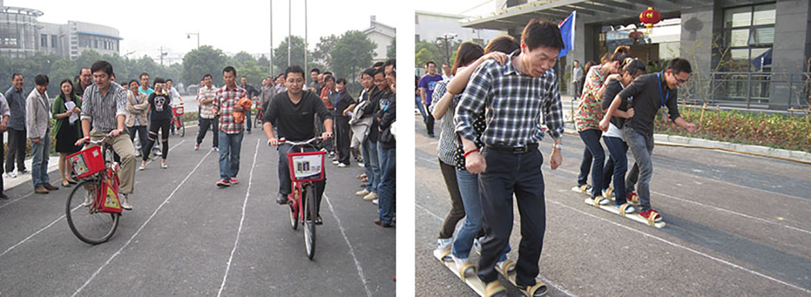 運動會項目從比賽開始就非常的激烈,由于都是實力派選手,大家實力不相上下,誰都沒能輕易的就勝出。經過激烈的角逐,終于決出冠軍。立定跳遠男子組由工程部的文峰以2.62m優異的成績獲得冠軍,女子組由技術部的陶麗霞以2.0m的成績勝出最終博得冠軍。單人跳繩男子組由工程部的姚駿以178個/分鐘優秀成績獲得冠軍,女子組由財務部的徐玉琴以154個/分鐘的優異成績獲得冠軍。單人項目里面其中競爭最激烈的就屬單車慢騎比賽了。幾經角逐最后由工程部的邢康以優異的成績擊敗了其他15個人獲得冠軍寶座,成為最后的贏家。
