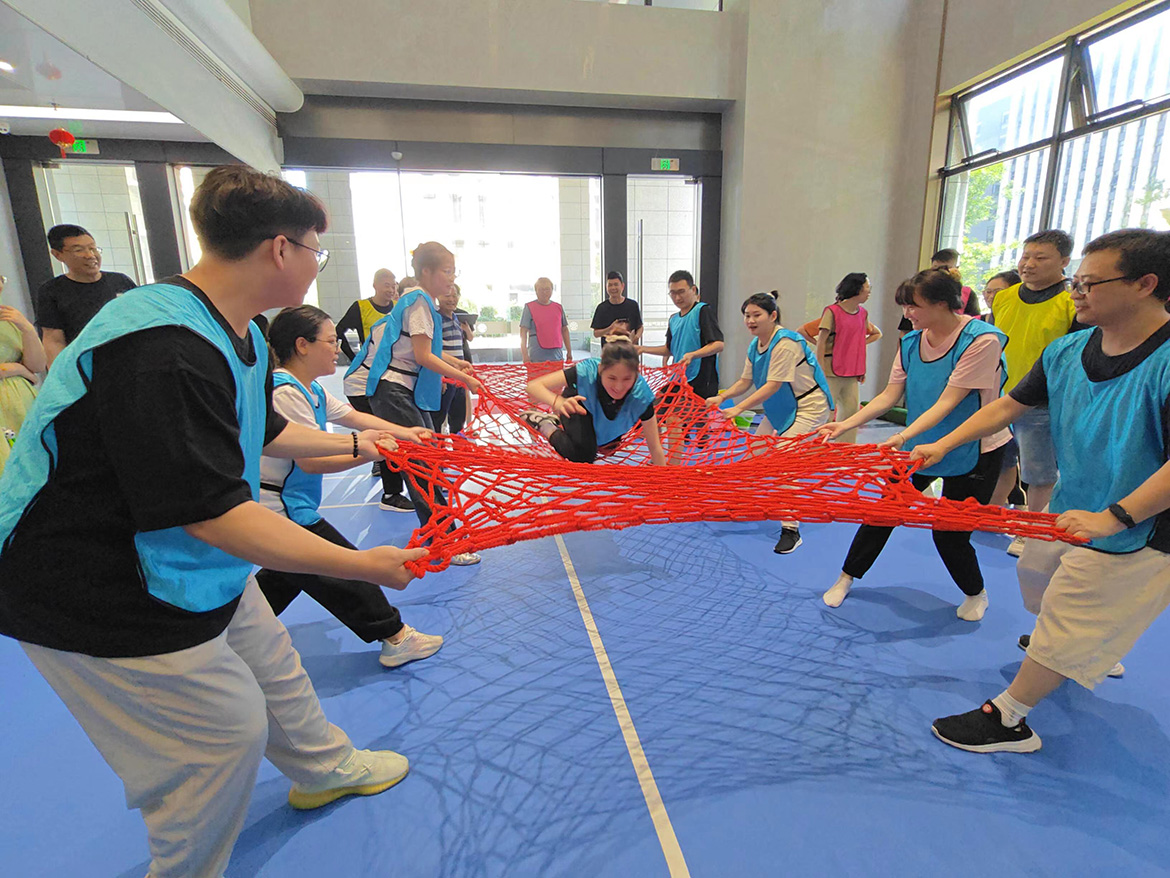合力搭建延伸出的幾條繩子將大家的勁使在一處,心連在一起。齊心協(xié)力是必須,百折不撓是常態(tài)?,F(xiàn)場瞬息萬變,引發(fā)大家陣陣歡呼。