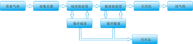 本技術(shù)針對(duì)的是污水處理站的惡臭氣體,污水處理站的惡臭氣體主要來(lái)源于進(jìn)水格柵、嚗氣沉沙池、初沉池、污泥脫水間、污泥沉淀池等;主要成分有氨氣、硫化氫和甲硫醇等無(wú)機(jī)物。根據(jù)污水處理站惡臭氣體的成分和特性,采用化學(xué)吸收法,使用螺旋噴霧填料裝置治理此類惡臭氣體,其治理效率極高。